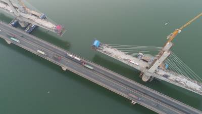蒙华铁路汉江特大桥拉索安装过半(客户端采用)