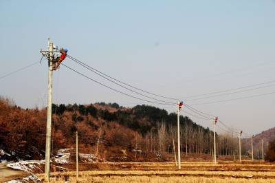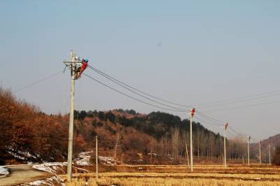 乡村振兴强电网 1月12日,国网谷城县供电公司员工在该县茨河镇前庄村新增10千伏茨58线。该公司认真贯彻落实党的十九大精神,投资3.5亿元改造278个村低电压卡口问题,确保乡村振兴战略用上可靠电,为农村全面脱贫奔小康提供坚强保障。(视界网马明刚摄)