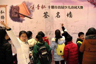 本届大赛由十堰广播电视台、十堰市关心下一代工作委员会、十堰市教育局语言文字工作委员会联合主办。大赛自去年12月启动,从报名到初赛、复赛、决赛,吸引数千名中小学生参与。。经过近一个月的比拼,2018年1月13日,“佳音杯”十堰市首届少儿诗词大赛决赛精彩上演,古韵诗词洋溢再次燃爆现场人气。