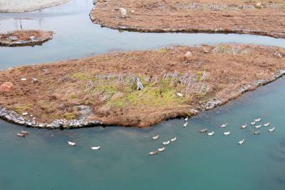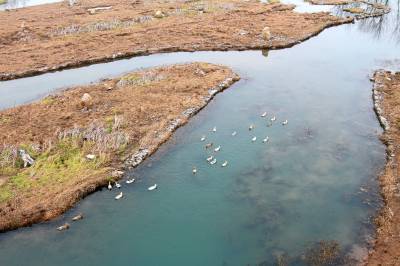 2018年1月13日,一群鸭子在房县马栏河塘溪段河流人工湿地欢快的游来游去。当地采取河长巡河、治理非法采砂、建设一批污水处理工程、依法关闭高污染企业、打击毒鱼和水生植物净化水体等六项重拳措施,综合治理流域面积114.4公里的马栏河水生态环境,还一河清水永续长流。目前,马栏河水清如镜,一河清水映蓝天。该县依托碧水清波的优势,开发水利景观项目,建设河流人工湖17座,已打造成鄂西北地区县级最大的河流观光胜地,为地方经济发展注入了活力。