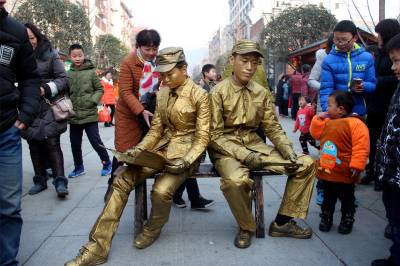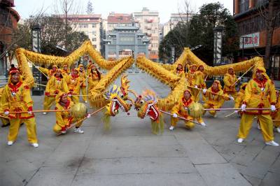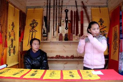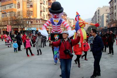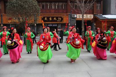 本次武当山特色非遗文化庙会以玉虚街为主线,沿途分布40多个小木屋,集中展示着观赏类、实用类、装饰类、艺术类四大非遗文化项目。例如捏糖人、葫芦画、拓印、折扇、千层底布鞋、根雕、木艺、书画等,各种年味儿十足的民间传统工艺供你挑选。此次庙会不仅武当味儿十足,还为游客们准备了精彩纷呈的民俗表演以及武当神戏、戏曲表演等。观传统工艺,赏民间绝活,品武当道茶,体味民间艺术、传统文化的“中国味、武当味、文化味、民俗味”,成为本届非遗文化展演的最大亮点。现场风趣的蚌壳舞、欢乐的骑毛驴、笑容可掬的大头娃娃等表演,带来浓浓的鄂西北风情,更是引起游客们满满的回忆。 视界网薛乐生摄