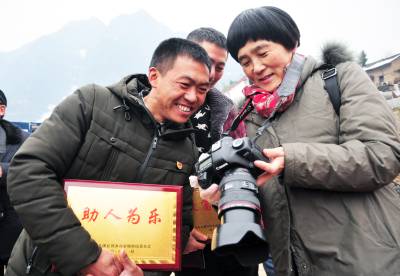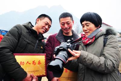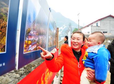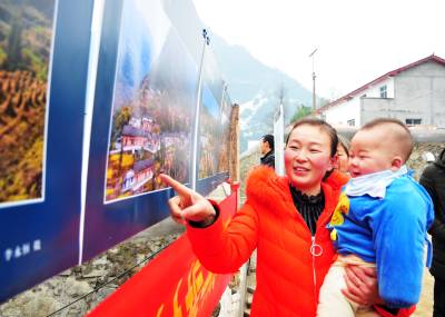 13日,巴东县溪丘湾乡高家坡村举行宣传十九大、摄影走基层、建设美丽乡村推进会与摄影展,村民兴高采烈地欣赏家乡的美景,观看镜头里的民风民俗,首届“最和睦家庭”表彰户更是一脸的自豪。