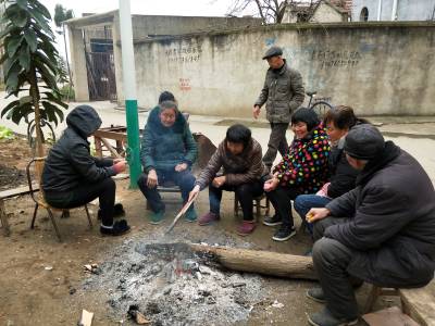 眼下正是三九寒冬,村民们依旧保留奉节老家的一些习俗,几位年纪大的围在一起烤火取暖,一道聊着乡音。周末孩子们在家,在移民村里玩耍,有的吃着刚刚烤熟冒着热气的红薯,生活祥和安逸。