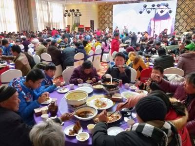 2018年1月14日,云梦县义工联合会携手爱心团体、爱心企业、爱心人士,邀请全县13个乡、镇、开发区的100个困境家庭在云梦喜来登酒店吃年饭,为他们表演了歌舞等节目,让这些家庭感受到社会的关爱和温暖,感受春节的喜庆和温馨。活动现场,还表彰了10名十优义工和十佳义工。吃年饭后,义工联为参加此次活动的家庭每户发了一袋米、一提食用油,一提饮料等年货物资。同时派出专车送他们回到各自的家庭。云梦义工联开展邀请困境家庭吃年饭这是第三年,在寒冷的冬天为这些困境家庭送来温暖,受到社会的广泛称道。本报视界网 陈保忠 摄