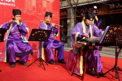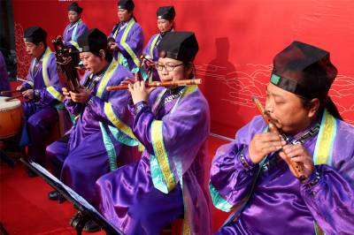 1月14日,十堰市武当仙山道乐团正在演奏武当山宫观道乐。