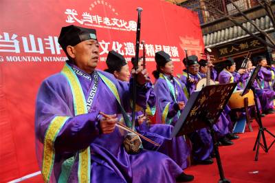 武当山宫观道乐是秦巴地区优秀民间文化与唐代至明代宫廷音乐相结合的产物,是中华优秀传统文化宝库中一颗璀璨的明珠,2006年被国务院公布为第一批国家级非物质文化遗产代表性项目名录。