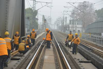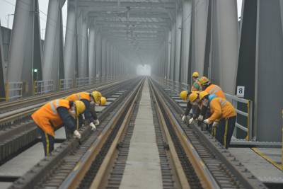 连日来,针对狗年春运日益临近的实际,中国铁路武汉局集团有限公司荆门桥工段提前做好春运准备工作,采取多项有效措施,扎实做好设备隐患排查整治工作,确保春运期间运输安全畅通。图为1月17日,中国铁路武汉局集团有限公司荆门桥工段职工在焦柳线枝城长江大桥上内整治设备隐患。