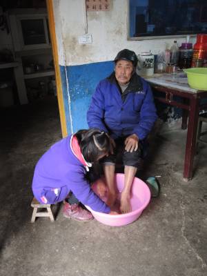 孝敬老人 1月17日,云梦县胡金店镇万民村聂大进家,在镇中心小学读书的孙女放学回家后,给劳累的爷爷洗脚。胡金店中心小学常年开展感恩教育,让学生感受长辈老人亲情,学会感恩,以充满爱心的心态对待社会。 通讯员 黄永强 潘小四 摄 通联 云梦县胡金店镇政府 黄永强 电话 15971282503