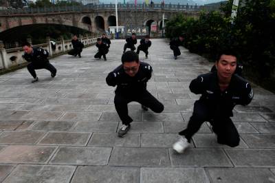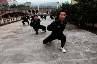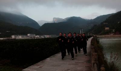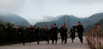 “一”、“二”、“三”、“四”……5分钟之内集合完毕的派出所全体民警、协警,喊着震天的口号,迈着整齐的步伐,沿着紧靠集镇的河岸,在两公里的长跑中拉开每日早操的序幕。接下来还有警察职业特色的擒敌拳、矮子步……早操时间共计30分钟。