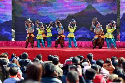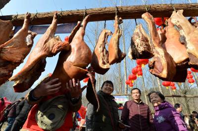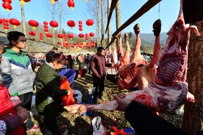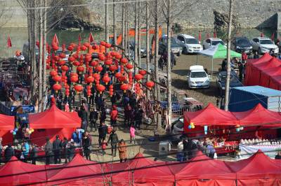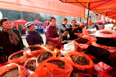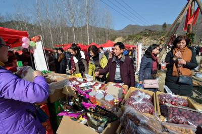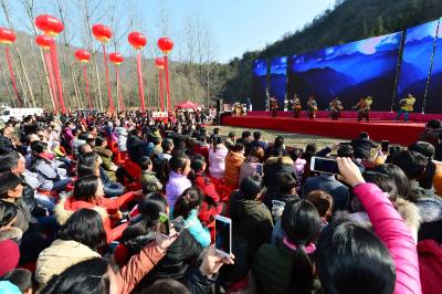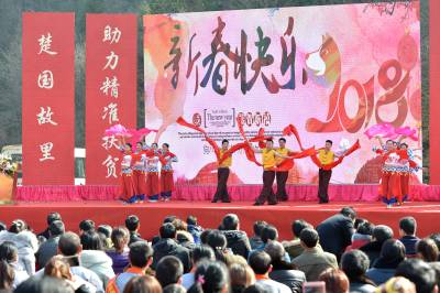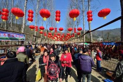 当日,以“助推精准扶贫,推进乡村旅游”为主题的襄阳年·保康味“幸福乡村·相思寨湾”旅游年货节在襄阳市保康县黄堡镇寨湾村开幕,通过年货展销、民俗文化展演、乡村趣味游玩、饮食文化体验等形式,吸引众襄阳、宜昌、十堰、随州、荆门等地近万名游客到年货节里购山乡年货,游美丽乡村,尝农家美味,看民俗表演,一派红红火火的景象。 活动旨在通过旅游年货节为当地贫困户搭建平台对接市场,带动当地土特产集中销售,帮助贫困群众增加收入,加快脱贫奔小康步伐,推进乡村旅游,助力精准扶贫。(视界网杨韬 王博摄)
