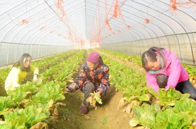 1月20日,保康县黄堡镇寨湾村农民在管理大棚蔬菜。 当日是大寒节气,保康县各地农民抢抓农时进行田间管理,一派繁忙景象。(视界网 陈泉霖 摄)