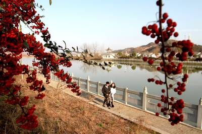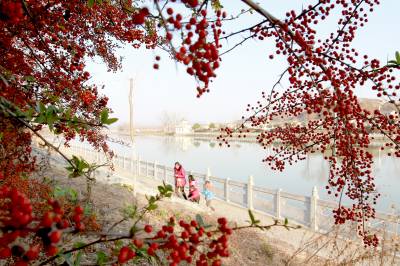 2018年1月20日,房县军店镇集镇中心村民在水清岸绿的马栏河畔游玩。房县实行县、乡镇、村三级联动,对全县314条河流同步拉开碧水行动战幕,打压乱占乱建、乱围乱堵、乱采乱挖、乱倒乱排、乱捕乱捞等破坏生态环境行为,还一河清水永续长流。目前,全县实现河长巡河常态化,依法清除网箱1470只,查处各类水事违法案件16起,完成关闭“五小”污染河流企业18家,县、乡镇两级治理后的污水排放标准由一级B提高到一级A。如今,房县境内河流碧水如境,青山浮水,倒影翩翩,条条河流沿岸绿色犹如千里画廊。