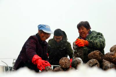 不畏风雪忙生产