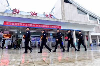 1月24日,多警种正在恩施火车站周边巡逻,为平安春运提前“预热”。(视界网 严鹏 摄)