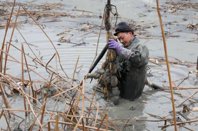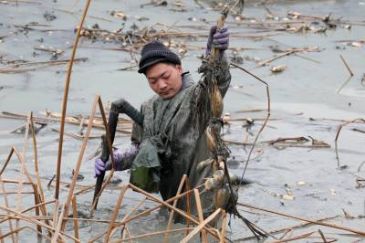 寒冬挖藕 泥里“淘金”