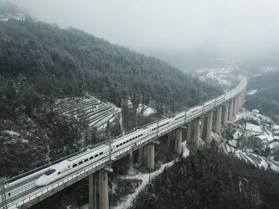 1月25日,湖北宜昌普降大雪,为确保入川咽喉要道宜万铁路安全畅通,中国铁路武汉局集团有限公司荆门桥工段以雪为令,迅速启动应急预案,集中人力清除道岔咽喉部位积雪,保证列车运行安全。