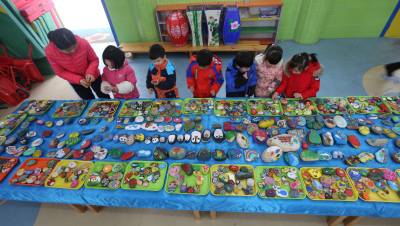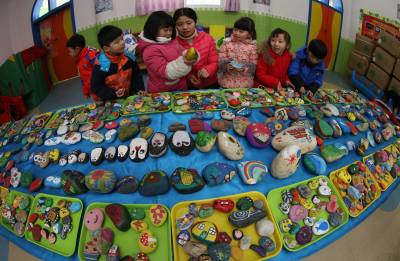 湖北省襄阳市实验幼儿园曾以汉江石子发明“益智石子棋”、并创造了17种玩法的。幼儿园常年对“母亲河”中的汉江石子情有独钟,为了庆祝即将到来的狗年,大一班的孩子在老师与家长帮助下,寻找汉江石并在有着浓郁狗年主题墙的背景下,特别创作了一组以“狗”为主题的石头作品。孩子们发挥自己的想象力,有可爱呆萌的小石头,有生动逼真的亲子作品,把狗狗画的童趣盎然。有趣的手绘图案让这些石头变得特别可爱,也使原本生硬的石头瞬间变得生动活泼起来,为马上到来的狗年增加了民族元素,赋予新的寓意。