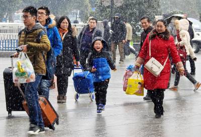 1月26日下午,继25日之后,江城连续两天,喜降瑞雪。1点25分,在汉口火车站站前广场上,这位小帅哥顶风冒雪,随大人们一起乘动车回家,他边走边跑,欢呼雀跃,下雪啰!回家啰!