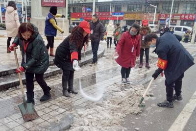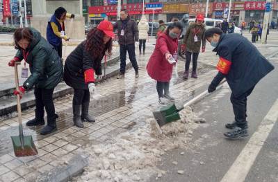 > 武汉市江汉区社区党员群干志愿者上街扫雪除冰