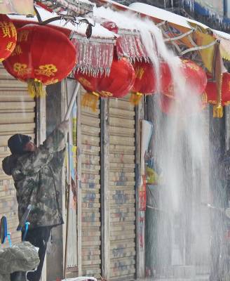 > 武汉市腊月里瑞雪纷飞 店主清扫积雪疑是银河落九天