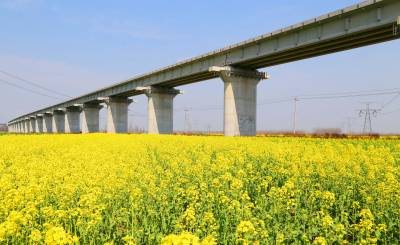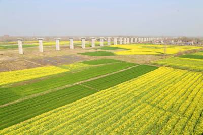本报荆州讯(通讯员 孟庆虎 李新华) 3月12日,蒙西华中铁路荆州长江公铁大桥附近盛开的油菜花给铁路建设带来勃勃生机。 据悉,中铁大桥局蒙华铁路荆州长江大桥项目部高度重视水土环保和文明施工,把大桥施工当作自己家园来建设,精心施工,科学管理,不损坏农村一寸土地,不污染农民一分农田,切实做到大桥施工与农民种地两不误,较好地营造了路地和谐氛围。