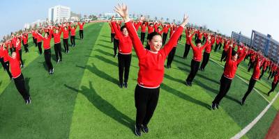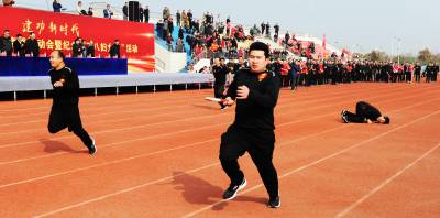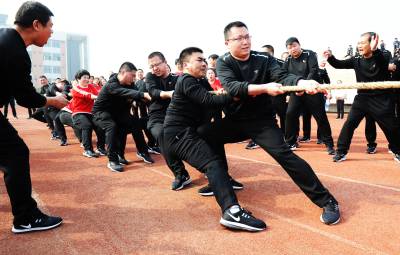 为加强体育锻炼,增强职工体质,促进全民健康,3月11日,湖北省襄阳市人社局举办了首届市直人社系统运动会,所属各单位的1310名干部职工组成14个体育参赛代表队,分别开展了党建知识竞赛、女子炫舞展演、第九套广播体操、50米迎面接力、混合拔河等比赛。经过激烈角逐,有7个代表队分别获得比赛单项一、二、三等奖,有3个代表队获得团体前3名。图为运动会现场运动员在进行炫舞展、广播体操、50米迎面接力赛和拔河比赛。 记者 叶星 摄