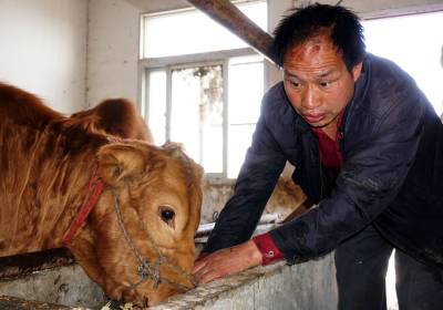 2018年3月13日,十堰市郧阳区白桑关镇淘沟河村2组村民余茂进与妻子是一对残疾人夫妻,夫妻二人依靠自已的勤劳的双手和智慧脱贫致富。今年50岁的余茂进眼睛患有疾病看东西都困难,妻子患有精神疾病。自2014年全家5口人被评为贫困户后,余茂进不等不靠凭借年轻时练就的做牛生意的本事,一直做着买牛卖牛的生意。2016年他银行贷款6万元养殖黄牛30多头,2017年年底卖出收入4万多元。日前被郧阳区评为"十大脱贫明星",受到区政府奖励。 视界网周家山 摄