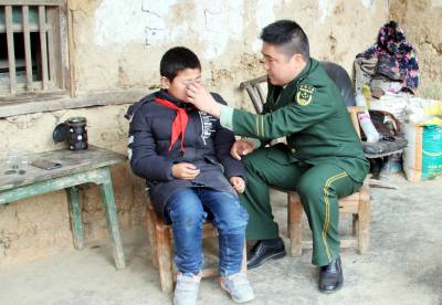 2018年3月13日,保康消防官兵正在该县龙坪镇看望慰问贫困学生。