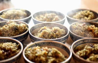 社饭带有特有的野菜清香,兼有腊味,可谓色香俱全,不用下饭菜亦能吃两大碗。土家人做社饭不光是自家人吃,还把它作为馈赠亲友的佳品。