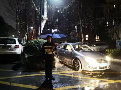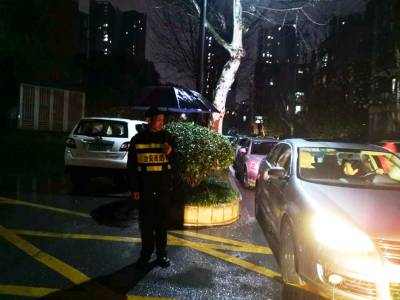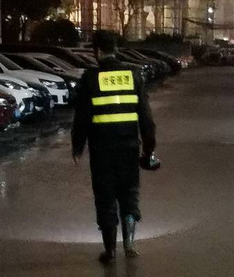 3月14日晚,一场突如其来的暴雨,使得武汉光谷大道当代国际花园的人行道上,瞬间雨水横流,在来来往往的车辆和行人匆忙往回赶的时候,小区的保安们则坚守在各自的岗位上,守护着业主的安宁。