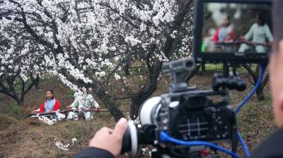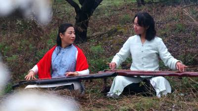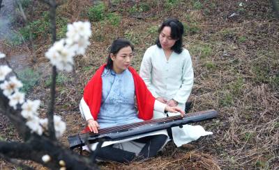 连日气温陡降,春寒料峭。3月18日下午,丹江口市三官殿办事处潘家岩村大片的武当榔梅迎风绽放,摇曳生姿。洁白如雪的榔梅花下,两位琴师在抚琴交流。在景区寻觅春天脚步的摄影师们循着琴声而来,被眼前的美景陶醉,举起长枪短炮拍个不停。