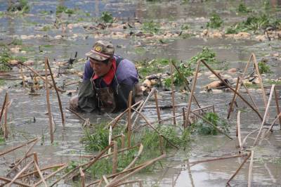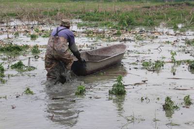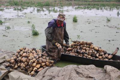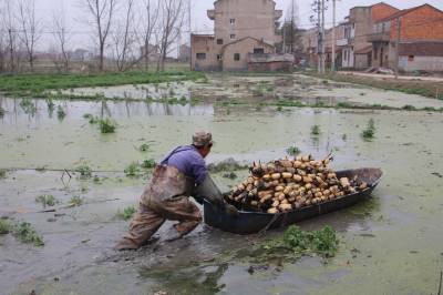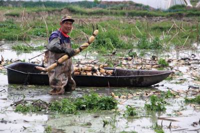 职业挖藕人陈武桥 淤泥水中一天挖藕五六百斤