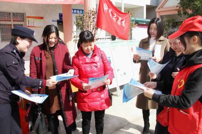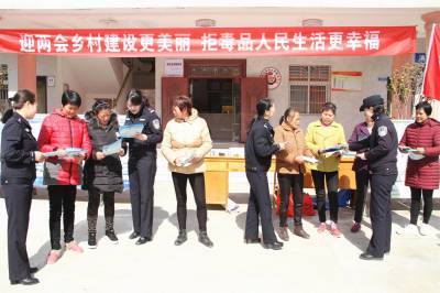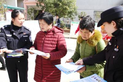 2018年3月19日,保康民警正在该县店垭镇格兰坪村开展普法宣讲活动。 连日来,保康县公安局组织禁毒、治安、交警等多警种开展“巾帼送法到基层”宣传活动,以摆放宣传展板、发放宣传资料等形式,宣传法律法规。(视界网 欧阳智慧 万茜)