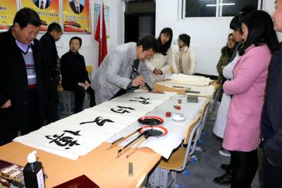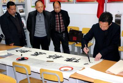 书法家们现场写下了“翰墨薪传”、“天道酬勤”、“业道酬精”、“上善若水”、“器识为先”、“博文约礼”等20多幅字,被在场的年轻教师和竹坪小学收藏。