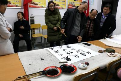 王素冰老师等一行希望年轻一代传承中华文化艺术的瑰宝,让文化艺术服务于当地经济社会的发展,服务于当地的精神文明建设,为建设美丽竹山、文明竹山、和谐竹山、富强竹山贡献力量。(视界网 张云朝 摄)