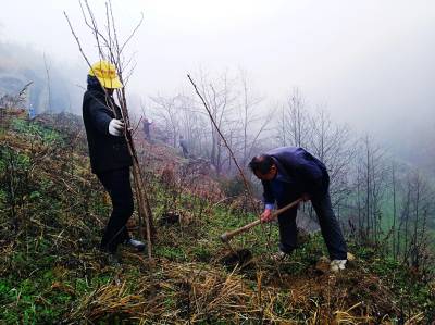 去年来,驻村工作队依据该村地域特点,确定了“打造绿色生态产业,依托文化旅游产品,促进全村脱贫”的路子,并逐步付诸实施。图为村民正在栽植银杏树。