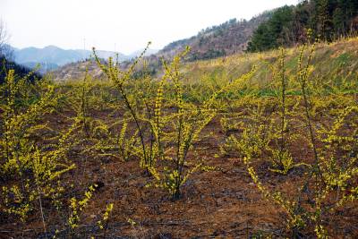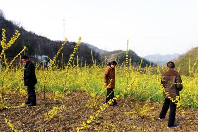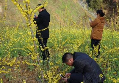 2018年3月21日,十堰市郧阳区白桑关镇石门墩村5组209国道旁100多亩金黄色的莲翅花正值盛开旺季,过往车辆纷纷停下来游客进地拍摄。莲翅是一种中药主 治急性肾炎、紫癜病、肺脓肿、视网膜出血。连翘药理作用为抗炎、抗菌、抗病毒、解热、镇痛、强心、利尿、抑制磷酸二酯酶、降血压。春夏之季郧阳区19个乡镇(场)种植的30万亩各种中药材花将陆续开放,即将成为旅游观花的好去处。 视界网周家山 摄
