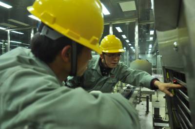 3月21日,农夫山泉湖北丹江口(均州)饮料有限公司建设现场,工人们在安装调试机器。这是农夫山泉股份有限公司在湖北丹江口市投资设立的第三个独立子公司,规划占地450余亩。一期计划投资11.88亿元,建设年产150万吨的饮料及天然水生产项目。其产品涵盖目前农夫山泉已有的全部产品系列,包括天然水系列、维生素水系列、农夫果园系列、尖叫产品系列、东方树叶、C100、茶π系列等。