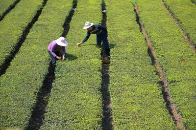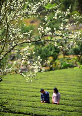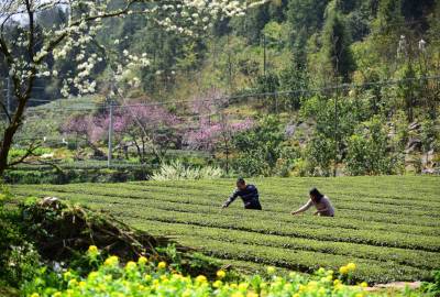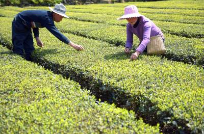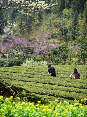 3月22日,茶农在宣恩县万寨乡马鞍山生态有机茶园采摘有机茶。该县以生态、富硒、有机为定位,立足恩施富硒资源,积极打造生态有机茶园,生态有机茶成为当地农民增收致富的主导产业,茶叶出口欧盟、美国、日本等地并获得有机茶认证。