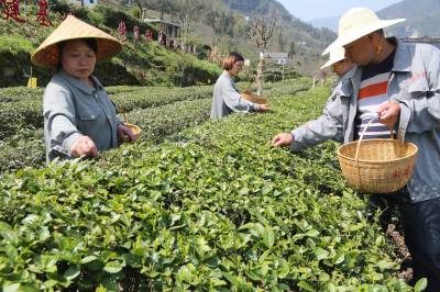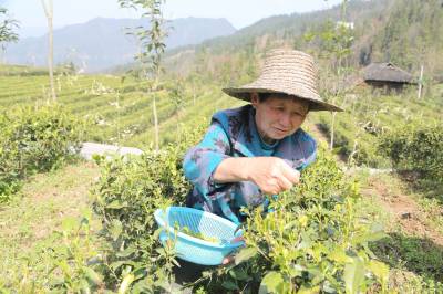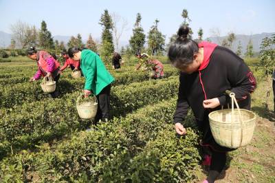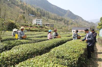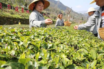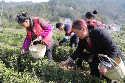 22日,鹤峰县邬阳乡有机茶园基地,茶农正在采摘新茶。据了解,取得有机认证的茶园,鲜叶收购价达到每公斤160元,茶农们热情高涨,抢抓天气与时节采摘春茶。 茶产业是鹤峰县推动农民脱贫致富的支柱产业。该县发展茶园面积35万亩,采取“公司+合作社+基地+农户”茶叶产业链条,坚持“全域有机”的发展之路,使之成为群众脱贫致富“金叶”,致力打造“百亿茶产业”。