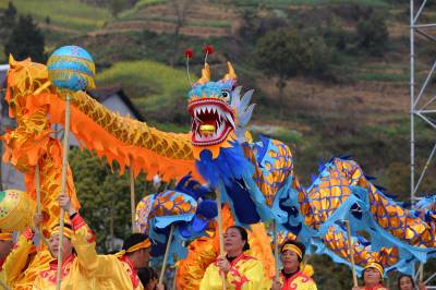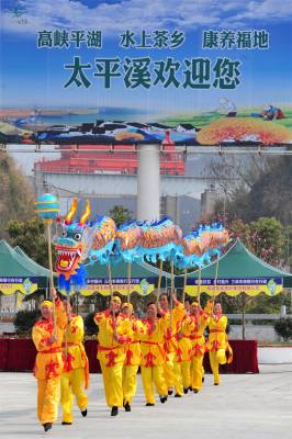 2018年3月23日,三峡工程“坝头库首第一镇”宜昌市夷陵区太平溪镇的三峡工程移民群众舞动“龙腾峡江”等三峡民俗文化神韵,擦亮湖北首个“民间舞蹈之乡”品牌,掀起全民健身热潮,展现三峡移民群众全新的精神风貌,迎接宜昌2018年“缤纷四季-乡约夷陵”乡村游活动于24日在三峡坝区启幕。视界网 张国荣 摄