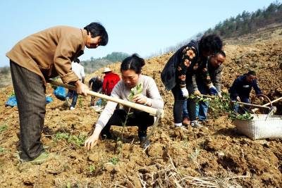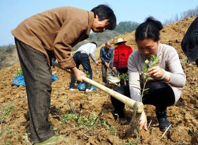2018年3月23日,当天上午,湖北省十堰市郧阳区青山镇万家坪村驻村扶贫工作队女队长王燕与村民正在山上栽种油茶苗,今年万家坪村流转200亩土地创办村集体的油茶基地,以解决40多个贫困家庭80多人在家门口就业,王燕与局领导汇报后得到了林业局的大力支持,经过几天的努力当天上午也全部完成了油茶苗的栽种任务,今后仅万家坪村的几个项目就可让每个贫困村民在家门口就业,每个月可领到2000多元钱的工资,还可以照顾一家人的老人和孩子。
