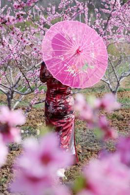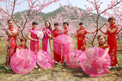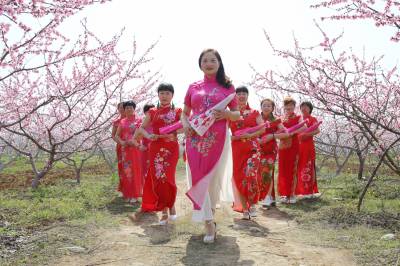 3月23日,在十堰市郧阳区柳陂镇山跟前村桃园里,旗袍爱好者合影留念。 当日,十堰市郧阳区的旗袍爱好者来到柳陂镇山跟前村桃园开展旗袍走秀活动,伴着花香展示中华民族传统服饰的魅力。 (视界网 曹忠宏 摄)