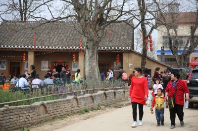 2018年3月24日,襄阳市民在美丽乡村感受农家乐的魅力。蜿蜒的小河绕村而过宜城市流水镇莺河村,有着自然风光和资源优势,村党支部在村容村貌建设中坚持将家门口的景观与自然融为一体,以“策划+规划”的方式建设“醉美莺河”,投资4800万元对莺河村的旧房进行改造,80多户农户将宅基地使用权交给莺河村进行连片开发,打造农耕民俗文化产业及互动旅游景观带。前将村民家中的老照片、旧家具、旧农具、传统服饰和生活用品收集起来建设农耕博物馆。发展乡村旅游后,莺河村80%的村民参与了农村旅游项目,村民人均年收入从15800多元(2014年)增长到了17800多元(2016年)。