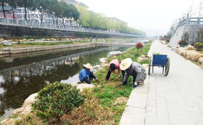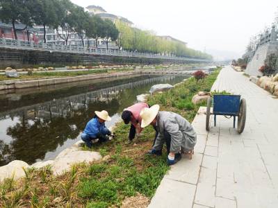 3月25日,几名民工正在清除武当山特区剑河景观带内杂草。去年武当山特区通过“一街一路一河”改造美化、绿化、亮化了武当山古镇,培植了玉虚街、太和大道、剑河等体闲游玩新出处。该区不断加强文物修复保护、环境绿化美化、文明劝导服务、背街小巷整治改造、景点景区管理水平,共同营造良好的全域旅游环境。( 郭军)