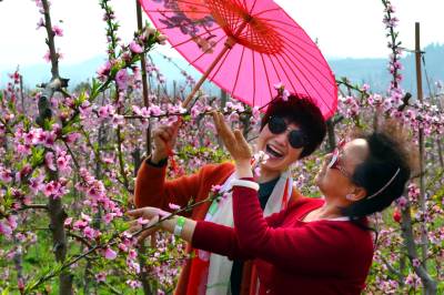 湖北十堰:书香满园春意浓 樱满枝头花正好 校园为民众开放赏花