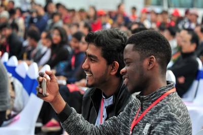 湖北十堰:书香满园春意浓 樱满枝头花正好 校园为民众开放赏花