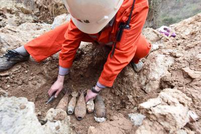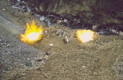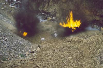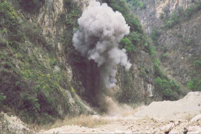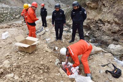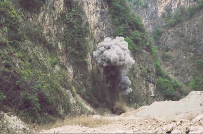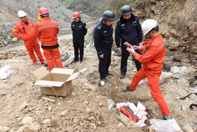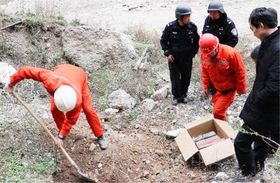 2018年3月26日,保康警方正组织专业技术人员在该县城关镇庹峪沟废弃采石场集中销毁危爆物品。