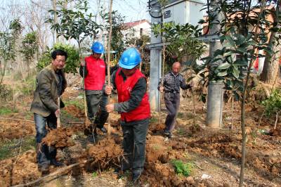 植树向导护电网 3月26日,国网谷城县供电公司庙滩供电所员工将10千伏庙古乐柳树沟支线4号配电台区下栽种的树苗挪走。该公司100多名,“植树向导”,与农民共同植树900多棵,转移、现场纠正、线路下、旁边树苗1800多棵,把树线矛盾很好的解决在了萌芽状态。(视界网马明刚摄)