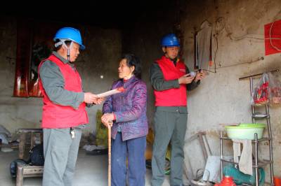 关爱送给老人 提增服务价值 3月26日,国网谷城县供电公司庙滩供电所共产党员服务队成员肖本焕、肖春风在庙滩镇兴隆殿村为104岁的留守老人熊平清更换灯泡、讲解安全用电知识。该公司9个党员服务队积极履行社会责任,为留守、空巢老人建档立卡,定期上门开展服务,当好他们的“贴心小棉袄”。(视界网马明刚摄)